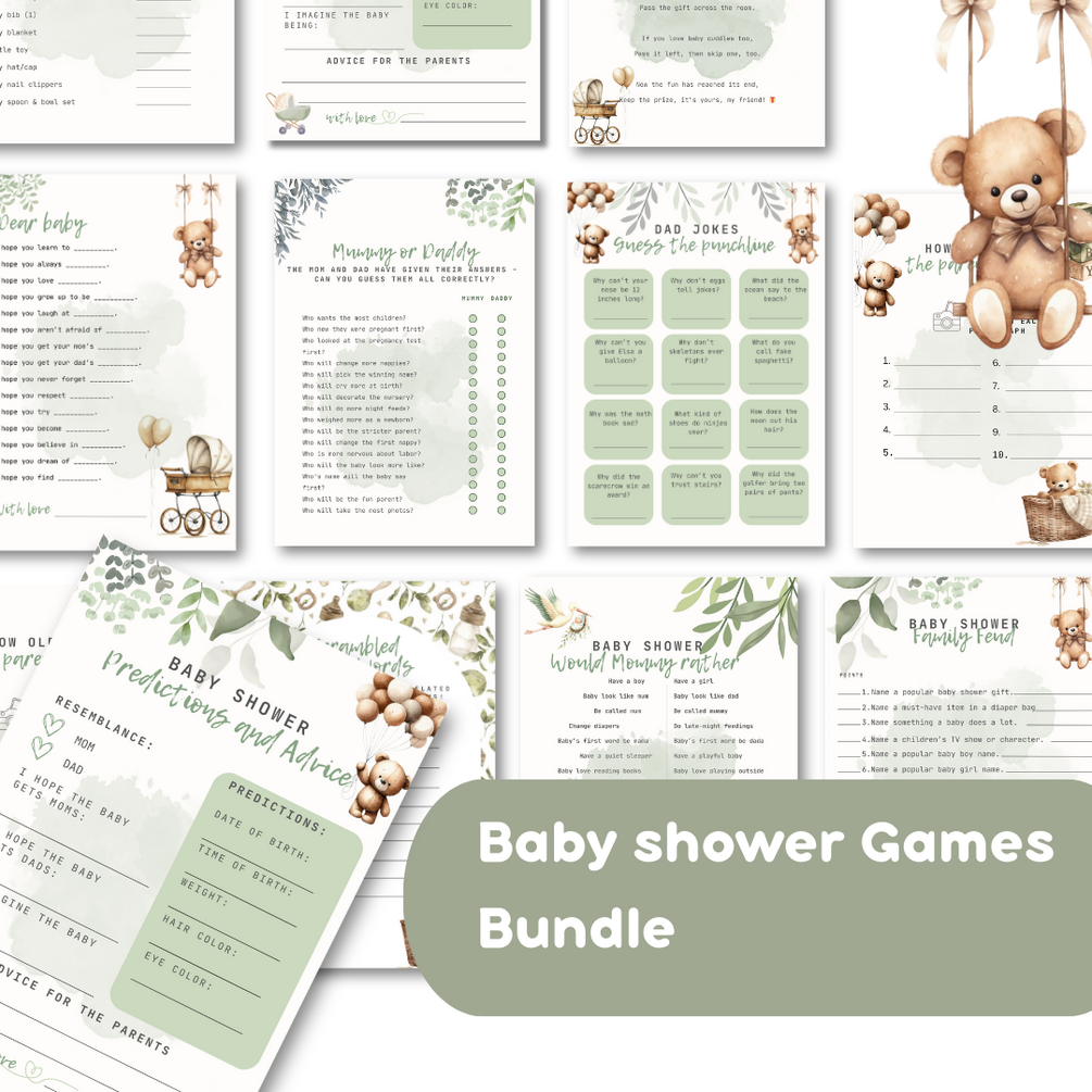 Baby Shower Games Bundle: 14 Printable Party Activities (PDF Download)